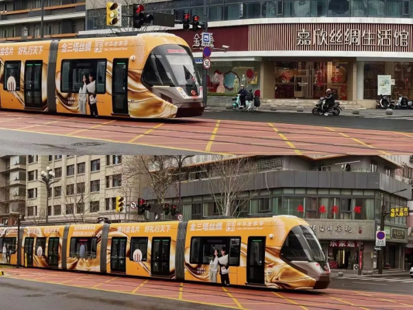 踏上這趟品牌列車,金三塔的絲韻文化栩栩可觸。列車以深棕色和金色為主色調(diào),車身上的 “三塔”地標(biāo)與“桑蠶繭”,是品牌特色與嘉興歷史、桑蠶文化的生動(dòng)結(jié)合。
