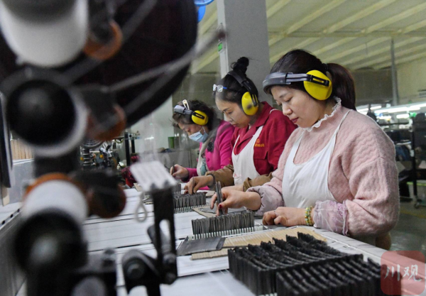 2月21日,在位于四川省南充市嘉陵工業(yè)集中區(qū)的四川順成紡織有限公司紡織車間,工人正在翻絲