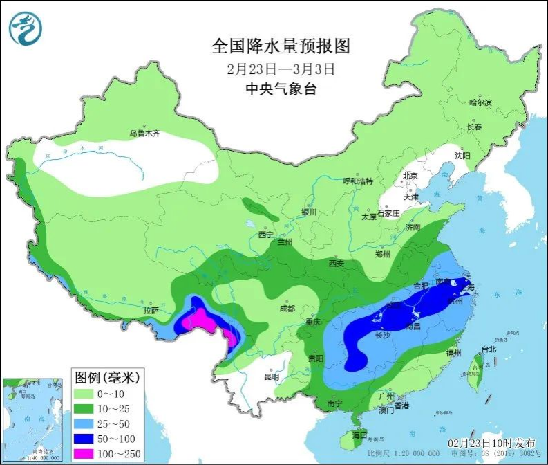 再關(guān)注全國天氣。根據(jù)中央氣象臺,未來10天(2月23日至3月3日),黃淮南部、江漢、江淮、江南北部和西部、華南中西部及貴州東部、重慶、西藏東南部等地累計(jì)降水量有15~30毫米,部分地區(qū)40~70毫米;西北地區(qū)、華北西部和北部、東北地區(qū)中北部、黃淮北部累計(jì)降水量有3~8毫米,青海東南部、甘肅南部、陜西南部等地的部分地區(qū)有10~20毫米;上述大部地區(qū)降水量較常年同期偏多4~7成,局地偏多1倍以上。