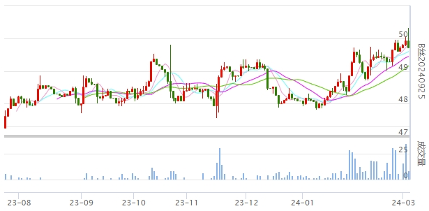 今日(2024年03月05日,周二)中國(guó)繭絲綢交易市場(chǎng)生絲指數(shù)下跌0.53%收于5159.79點(diǎn)。B絲(商檢4A級(jí)生絲):240325合約下跌0.27萬(wàn)元報(bào)收于53.34萬(wàn)元;240925合約下跌0.21萬(wàn)元報(bào)收于49.71萬(wàn)元;250325合約報(bào)平收于50.22萬(wàn)元。