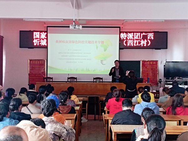 在紅渡鎮(zhèn)西江村培訓(xùn)會(huì)上,羅平作桑樹病蟲害綠色防控關(guān)鍵技術(shù)專題培訓(xùn),與參訓(xùn)學(xué)員現(xiàn)場(chǎng)互動(dòng)、答疑解惑,贏得蠶農(nóng)群眾的一致好評(píng)。參加培訓(xùn)的群眾潘敏雅表示“這樣生動(dòng)活潑、通俗易懂的培訓(xùn)會(huì)效果非常好,我們能夠?qū)W到科學(xué)管理桑樹的方法,希望今后能夠多辦、常辦?!?/p>