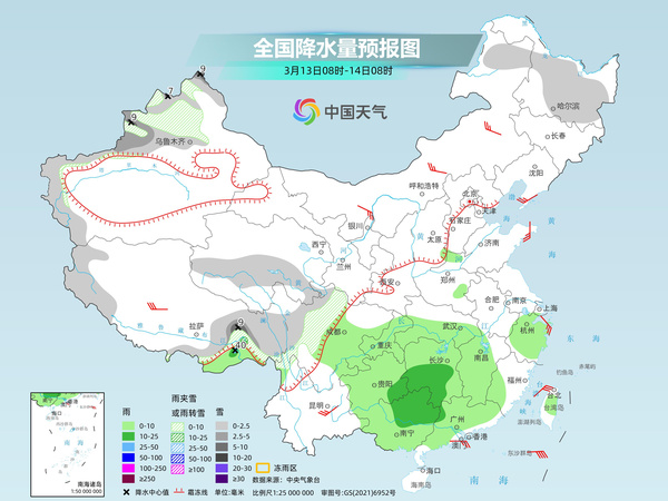 后天,南方大范圍陰雨將再度鋪展,新疆北疆北部和沿天山地區(qū)、西藏西北部和東部、內(nèi)蒙古東北部、黑龍中東部、青海南部、川西高原等地部分地區(qū)有小到中雪或雨夾雪,其中,新疆北疆北部和西部高海拔地區(qū)、西藏東部等地局部地區(qū)有大雪(5~9毫米)。西藏東南部、西南地區(qū)東部、江漢大部、江南大部、華南大部等地部分地區(qū)有小到中雨,其中,西藏東南部等地局部地區(qū)有大雨。
