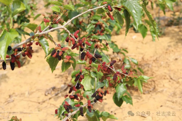 陽春三月,草長鶯飛。由于天氣偏暖且管護得當,廣西凌云縣的果桑已提早開花結果,開始進入成熟階段。