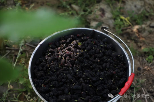 桑園里,村民們穿梭在桑樹間,雙手快速地將一顆顆烏紫油亮的桑葚摘下放入桶中。積累得多了,村民或背、或挑、或用車拉,把剛采摘好的桑葚帶到廣西嘉桂農業(yè)科技有限公司的集中收購點售賣。隨著一桶桶桑果的倒入,稱上的數值也在不斷的上升,村民臉上揚起了笑顏。