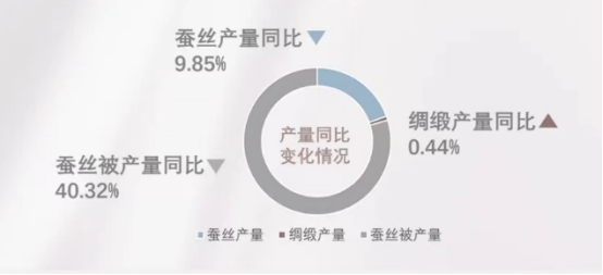 2023年1-12月,全國(guó)規(guī)模以上絲綢企業(yè)蠶絲產(chǎn)量同比下降9.85%,緞產(chǎn)量同比增長(zhǎng)0.44%,蠶絲被產(chǎn)量同比下降40.32%。
