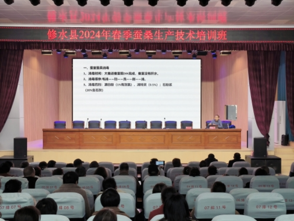 3月15日,江西省經(jīng)作所蠶??萍继嘏蓤F(tuán)到修水縣開展2024年春蠶生產(chǎn)技術(shù)培訓(xùn)。修水縣蠶桑技術(shù)員、蠶桑專業(yè)合作社負(fù)責(zé)人和種養(yǎng)大戶等共156人參加了培訓(xùn)。