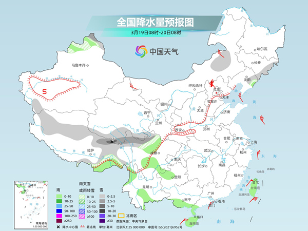 后天,內(nèi)蒙古中東部、東北地區(qū)西部、遼東半島、新疆伊犁河谷和南疆西部山區(qū)、西藏東部和南部、甘肅河西、河北北部、川西高原南部等地部分地區(qū)有小到中雪或雨夾雪,其中,內(nèi)蒙古東南部、新疆伊犁河谷等地部分地區(qū)有大到暴雪(10~15毫米)。內(nèi)蒙古中部、新疆沿天山地區(qū)和伊犁河谷、西藏南部、河北東北部、安徽南部、湖北東部、江西北部、浙江中部、川西高原南部、云南西部、華南北部、廣東中部等地部分地區(qū)有小雨,其中,新疆沿天山地區(qū)和伊犁河谷等地部分地區(qū)有中雨。