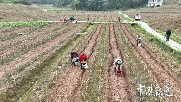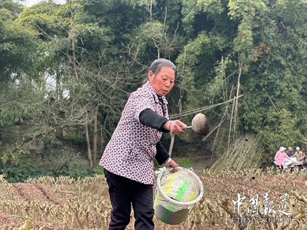 在四川安泰繭絲綢集團(tuán)有限公司猛山鄉(xiāng)桑蠶基地里,蠶農(nóng)們穿梭其間,打窩、施肥、壘土,田間地頭一派熱火朝天的景象。