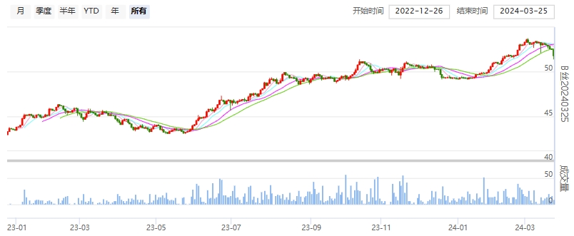 今日(周一)是240325生絲合約的最后交易日,今日倉量略減少同時(shí)價(jià)格下跌較多,終盤收于51.84萬元/噸。今日其余多數(shù)合約價(jià)格也略收跌。