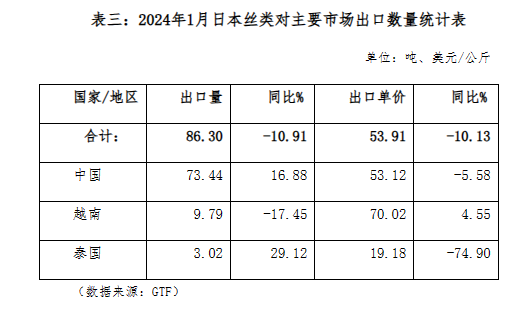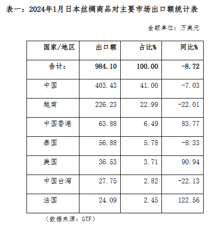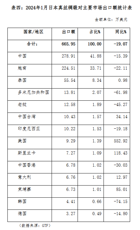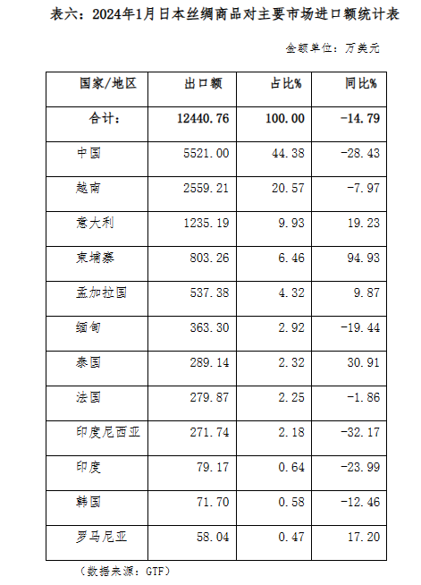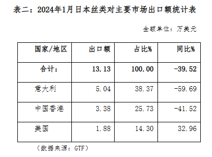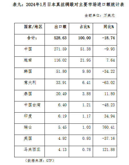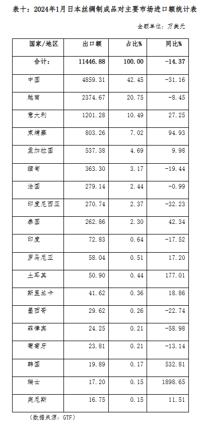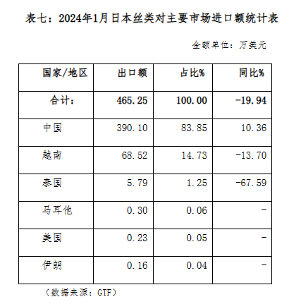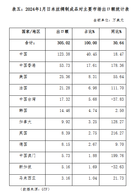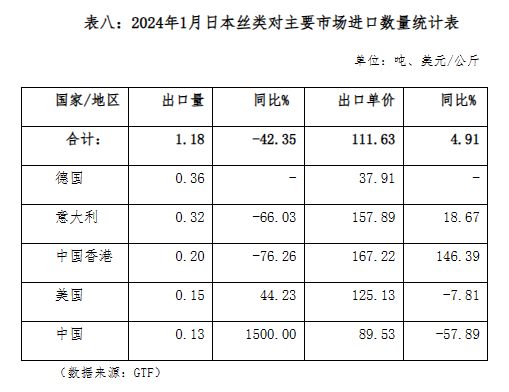 數(shù)據(jù)丨2024年1月日本絲綢商品貿(mào)易統(tǒng)計(jì)簡(jiǎn)報(bào)
