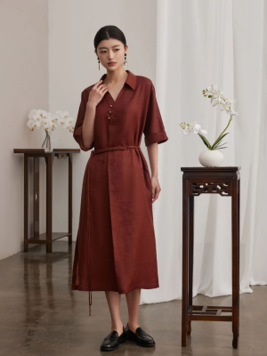 在眾多色系中,紅云紗的“紅”代表著高級(jí)的大地色,熱烈卻不耀眼,出眾卻又包容,象征吉祥和繁榮;紅云紗的面料輕盈飄逸,穿著輕靈飄動(dòng),透氣性和懸垂性極佳。