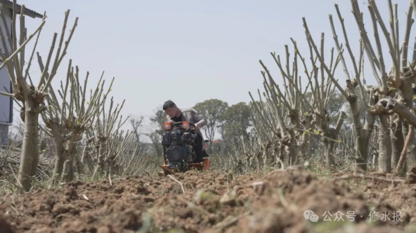 當(dāng)前,全縣桑園已全面進(jìn)入春管春護(hù),縣蠶桑技術(shù)中心的技術(shù)人員下到田間地頭提供技術(shù)指導(dǎo),推廣機(jī)械化作業(yè),大大提高了管護(hù)效率,有效降低了勞動(dòng)成本。在養(yǎng)蠶大戶王志罡的桑園基地里,技術(shù)人員正在指導(dǎo)村民利用電剪修剪桑樹(shù)枝條。在修剪好的桑園里,微耕機(jī)同步翻地,今年桑園春管有了機(jī)械設(shè)備的投入,較傳統(tǒng)人工管護(hù)效率提升了5倍。桑園旁邊就是省力化養(yǎng)蠶大棚,村民對(duì)方格簇進(jìn)行消毒,為春蠶飼養(yǎng)做準(zhǔn)備。