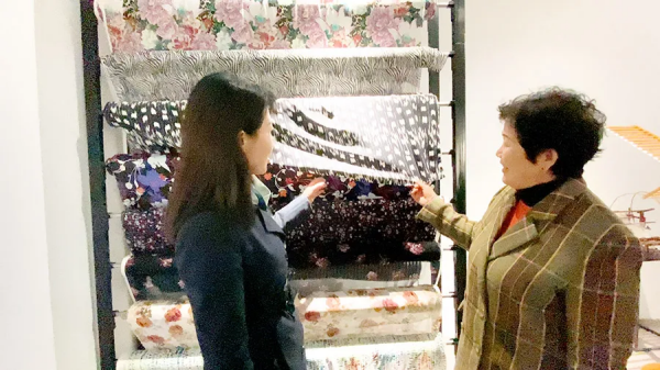 3月26日上午,新疆伊犁州婦聯(lián)黨組書記、副主席袁紹偉、新疆伊犁州婦聯(lián)發(fā)展部部長皇甫超瑾、伊犁州女企業(yè)家協(xié)會副會長馬秀玲、伊犁州女企業(yè)家協(xié)會理事王雪琴一行深入華佳絲綢考察,省婦聯(lián)辦公室副主任張琳、市婦聯(lián)黨組成員、副主席孫姝、市婦聯(lián)聯(lián)機關(guān)黨委專職副書記、辦公室副主任安川、吳江區(qū)和盛澤鎮(zhèn)婦聯(lián)領導陪同調(diào)研,中國絲綢協(xié)會副會長、華佳絲綢董事長王春花負責陪同接待。
