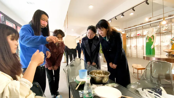 考察團一行先后參觀了江南繅絲博物館大樓、華佳蠶??破震^、江南蠶農(nóng)之家、江南繅絲博物館、華佳時尚館、紅石榴家園、桑羅品牌展廳。