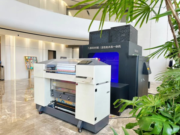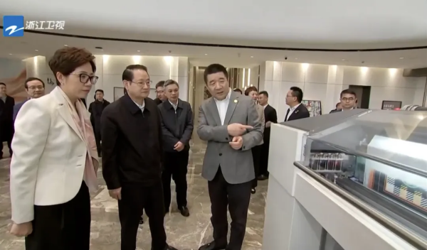 易書(shū)記在萬(wàn)事利集團(tuán)董事長(zhǎng)屠紅燕、萬(wàn)事利絲綢董事長(zhǎng)李建華的講解下,全程觀摩了絲巾從AI設(shè)計(jì)定制到一體機(jī)印染生產(chǎn)的全過(guò)程,他對(duì)萬(wàn)事利利用新技術(shù)改造傳統(tǒng)印花工藝,實(shí)現(xiàn)了紡織零污染給予高度肯定:“一體機(jī)是顛覆性的技術(shù)革命,是紡織行業(yè)的新質(zhì)生產(chǎn)力?!?/p>