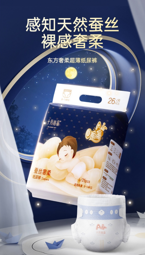 十月結(jié)晶蠶絲奢柔紙尿褲自誕生之初,就立志于打造中國家庭的信賴之選。品牌源于對品質(zhì)的極致追求和對消費者需求的深刻理解。憑借其用心做國貨的理念,十月結(jié)晶超薄紙尿褲在業(yè)內(nèi)獲得了廣泛好評,積累了良好的口碑和聲譽。