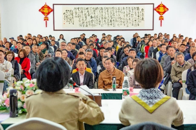 3月31日上午,綿陽市涪城區(qū)蠶業(yè)科學(xué)技術(shù)協(xié)會(huì)召開2023年度共育、大戶表彰暨培訓(xùn)大會(huì)。來自涪城區(qū)各鎮(zhèn)的養(yǎng)蠶共育戶、養(yǎng)蠶大戶、蠶協(xié)會(huì)員及綿陽天虹絲綢有限責(zé)任公司全體員工等近300人參會(huì)。四川省蠶業(yè)協(xié)會(huì)會(huì)長、涪城區(qū)蠶業(yè)科學(xué)技術(shù)協(xié)會(huì)理事長、天虹公司董事長楊慧君出席大會(huì)并作重要講話。天虹公司總經(jīng)理薛憶主持本次會(huì)議。