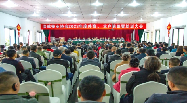 會(huì)上,公司總經(jīng)理薛憶深入分析了當(dāng)前行業(yè)形勢,公司副總經(jīng)理賈艷芳代表協(xié)會(huì)作2023年度工作總結(jié),并解讀2024年蠶種訂種政策,站長田興維、董明喜分別就桑園管理、小蠶共育等進(jìn)行技術(shù)培訓(xùn),協(xié)會(huì)秘書長、公司監(jiān)事曾紅代表公司對(duì)全區(qū)2023年度先進(jìn)共育戶、大戶進(jìn)行表彰,并現(xiàn)場頒發(fā)獎(jiǎng)金460余萬元,共育兼返包大戶文紅、劉世剛、劉福蓉,返包大戶陳司法、夏榮保、李愛國、鐘銳等7人代表全區(qū)共育戶、返包大戶談工作體會(huì)。