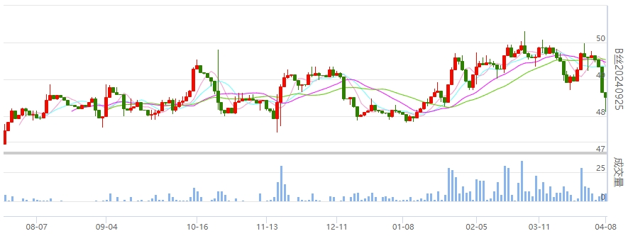 今日(2024年04月08日,周一)中國繭絲綢交易市場生絲指數(shù)下跌0.33%收于4910.63點。B絲(商檢4A級生絲):240425合約下跌0.06萬元報收于48.90萬元;240925合約下跌0.15萬元報收于48.51萬元;250325合約下跌0.21萬元報收于48.96萬元。