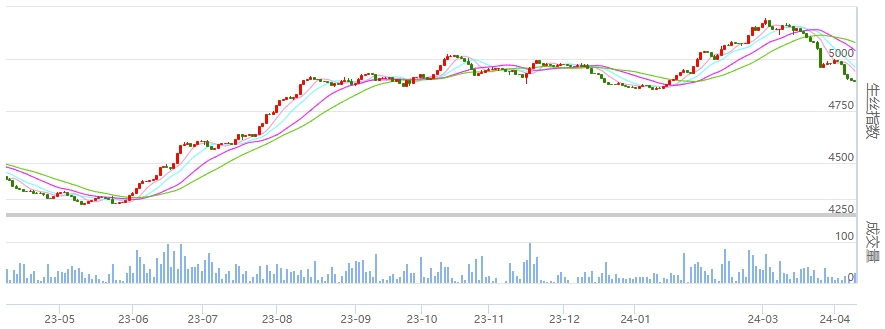 今日(周二)盤面遠(yuǎn)近各生絲合約漲跌不一,成交量較昨日放大,現(xiàn)貨月240425生絲合約今日減倉明顯價格略收跌,240925合約今日略收紅,遠(yuǎn)月的250325今日也有成交。