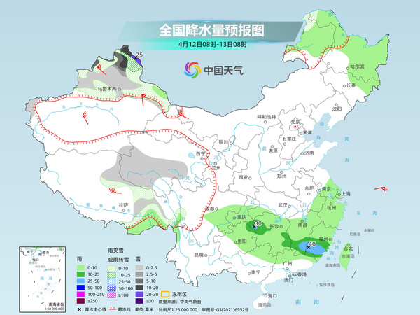 其中今天,內(nèi)蒙古東北部、新疆北疆東部和沿天山地區(qū)、西藏北部、西北地區(qū)中部等地部分地區(qū)有小到中雪或雨夾雪,其中,新疆北疆北部和北疆東部等地部分地區(qū)有大到暴雪,局地大暴雪。內(nèi)蒙古東北部、東北地區(qū)東部和北部、新疆北部、西藏東南部、江淮大部、江南、西南地區(qū)東部、華南北部、臺(tái)灣島等地部分地區(qū)有小到中雨,其中,江西南部、福建南部等地部分地區(qū)有大雨。