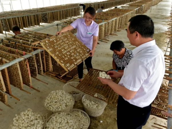 江蘇南通海安市栽桑養(yǎng)蠶歷史悠久,早在上世紀(jì)六七十年代,繅絲、絲織企業(yè)就開始涌現(xiàn)。如今,當(dāng)?shù)匾研纬奢^完備的繭絲綢產(chǎn)業(yè)鏈,手握“中國湖桑之鄉(xiāng)”“中國繭絲綢之鄉(xiāng)”“中國繭絲綢生產(chǎn)基地”等多張地域名片。農(nóng)行江蘇分行持續(xù)創(chuàng)新產(chǎn)品服務(wù),助力桑蠶產(chǎn)業(yè)轉(zhuǎn)型升級、融合發(fā)展。