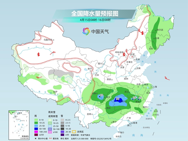 未來(lái)三天(4月15日至17日),南方新一輪降雨發(fā)展,江南、華南等地有中到大雨,局地暴雨或大暴雨。18日至20日,我國(guó)還將有一次大范圍降水過(guò)程,近期南方降雨頻繁,需注意防范次生災(zāi)害的發(fā)生。在北方,受冷空氣影響,部分地區(qū)今天仍有大風(fēng)和沙塵天氣,東北等地降溫明顯,需注意防范。