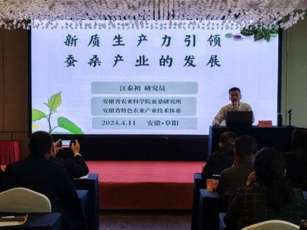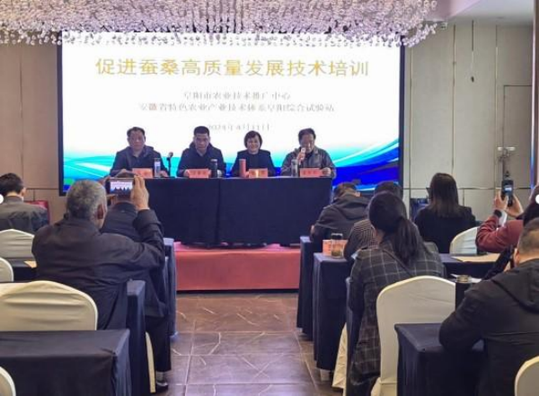 為提高阜陽市蠶桑生產(chǎn)大戶和技術(shù)人員的專業(yè)水平,做好春季蠶桑生產(chǎn),應(yīng)阜陽市農(nóng)業(yè)技術(shù)推廣中心邀請,2024年4月11日,安徽省特色農(nóng)業(yè)產(chǎn)業(yè)技術(shù)體系首席專家、省農(nóng)科院蠶桑研究所副所長汪泰初研究員以及安徽農(nóng)業(yè)大學(xué)生命科學(xué)學(xué)院徐家萍教授赴阜陽進行專業(yè)技術(shù)授課。阜陽市農(nóng)業(yè)技術(shù)推廣中心蠶桑科科長、安徽省特色農(nóng)業(yè)產(chǎn)業(yè)技術(shù)體系阜陽綜合試驗站站長孟慶杰主持,阜陽市農(nóng)業(yè)技術(shù)推廣中心副主任程偉到會并作動員講話。各縣(市、區(qū))農(nóng)業(yè)技術(shù)推廣中心蠶桑負責(zé)人、技術(shù)骨干和蠶桑大戶50人參加培訓(xùn)。