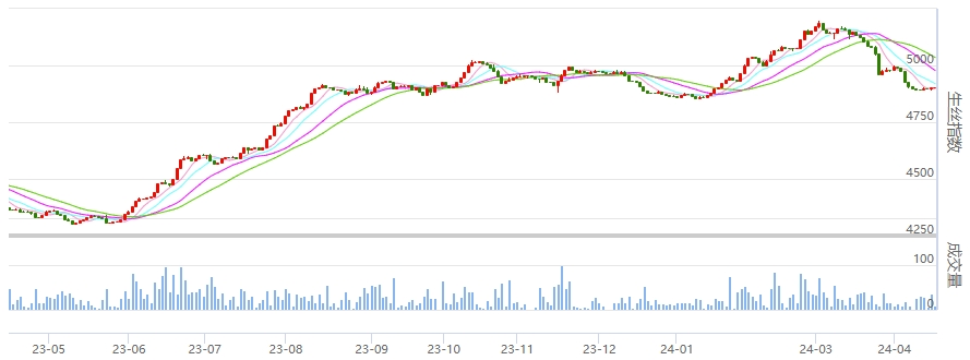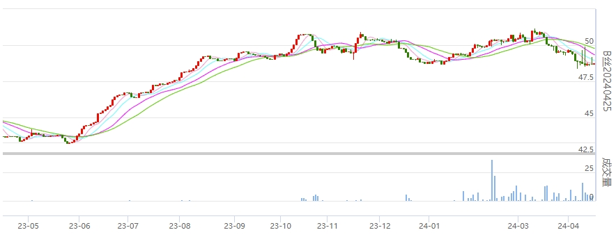 今日(2024年04月17日,周三)中國(guó)繭絲綢交易市場(chǎng)生絲指數(shù)微漲0.05%收于4904.50點(diǎn)。B絲(商檢4A級(jí)生絲):240425合約上漲0.03萬元報(bào)收于48.75萬元;240925合約上漲0.03萬元報(bào)收于49.23萬元;250325合約下跌0.15萬元報(bào)收于49.77萬元。