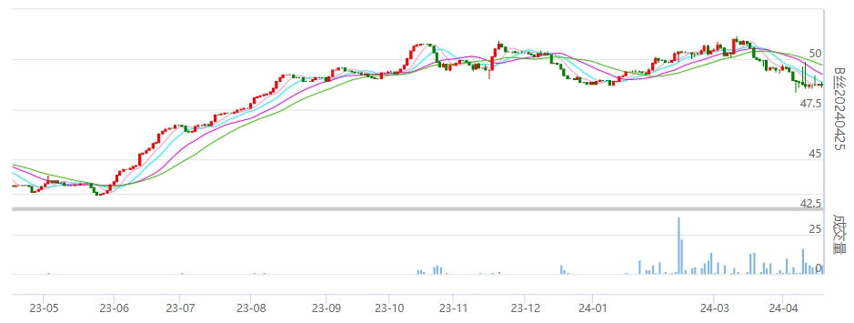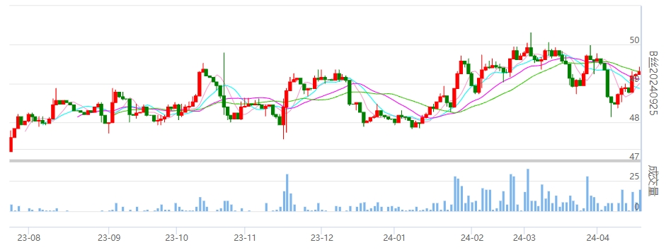 今日(2024年04月18日,周四)中國(guó)繭絲綢交易市場(chǎng)生絲指數(shù)微漲0.03%收于4905.76點(diǎn)。B絲(商檢4A級(jí)生絲):240425合約下跌0.03萬(wàn)元報(bào)收于48.72萬(wàn)元;240925合約上漲0.09萬(wàn)元報(bào)收于49.32萬(wàn)元;250325合約上漲0.24萬(wàn)元報(bào)收于50.01萬(wàn)元。
