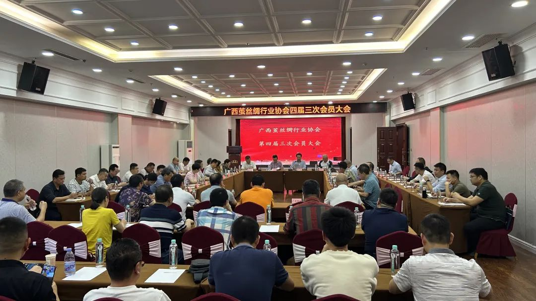 廣西春繭全面上市之際,為幫助企業(yè)做好今年絲綢生產(chǎn)經(jīng)營(yíng)工作,便于企業(yè)間交流各地蠶繭生產(chǎn)、收購(gòu)和企業(yè)生產(chǎn)經(jīng)營(yíng)情況,更好把握市場(chǎng)趨勢(shì),調(diào)整經(jīng)營(yíng)思路,促進(jìn)廣西絲綢行業(yè)健康發(fā)展,廣西繭絲綢行業(yè)協(xié)會(huì)于4月19日下午在河池市宜州區(qū)組織召開(kāi)四屆三次會(huì)員大會(huì)、四屆五次理事會(huì)暨 2024 年全區(qū)繭絲綢(春季)生產(chǎn)經(jīng)營(yíng)座談會(huì)。相關(guān)部門(mén)領(lǐng)導(dǎo)、協(xié)會(huì)領(lǐng)導(dǎo)和部分絲綢企業(yè)負(fù)責(zé)人等70余人參加了此次會(huì)議。廣西區(qū)工信廳梁維佳工程師等領(lǐng)導(dǎo)出席會(huì)議指導(dǎo)工作。
