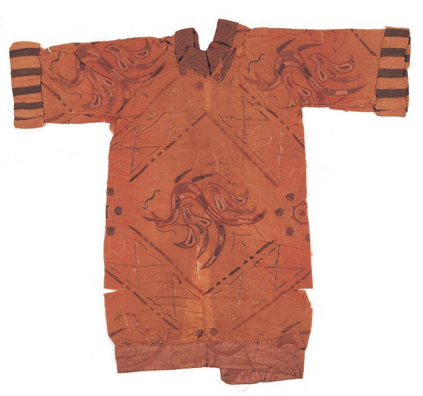 王佳介紹,馬山一號楚墓靠近楚郢都紀南城,年代為戰(zhàn)國中晚期,古墓較小,但1982年發(fā)掘時給考古工作者帶來巨大的驚喜?!榜R山一號墓共出土絲織品152件,其中完整衣物就有35件,因數(shù)量多,品種全,有‘地下絲綢寶庫’之美譽。”王佳說,在此之前,考古工作者只在湖北、湖南的楚墓里面發(fā)現(xiàn)一些絲織品碎片,根本沒見過先秦衣服的完整實物。