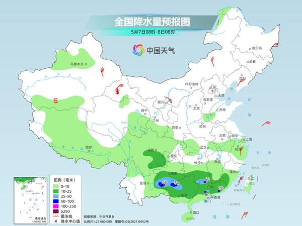 未來三天(5月7日至9日),我國(guó)南方降雨范圍依然較廣,但落區(qū)較分散,強(qiáng)度也整體不強(qiáng),主要是西南、華南一帶多陣雨或雷陣雨,廣東、廣西和貴州部分地區(qū)雨勢(shì)較強(qiáng)。此外,我國(guó)北方地區(qū)未來三天晴熱天氣將明顯增多,西北、華北和黃淮多地最高氣溫將達(dá)到30℃以上,北京、天津、蘭州等地入夏進(jìn)程或?qū)⒕痛碎_啟。
