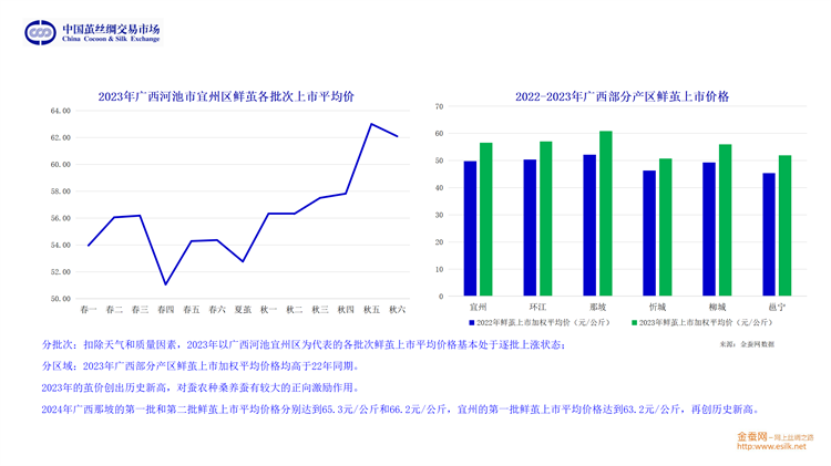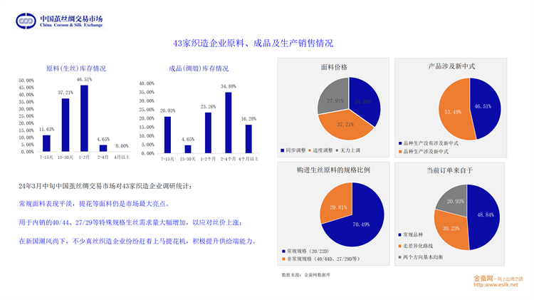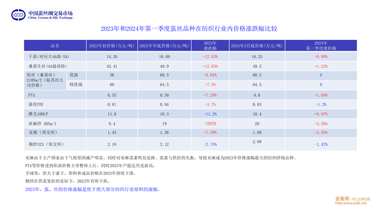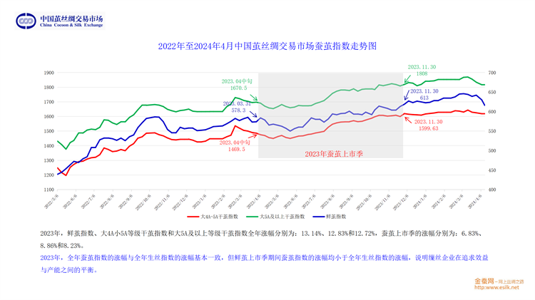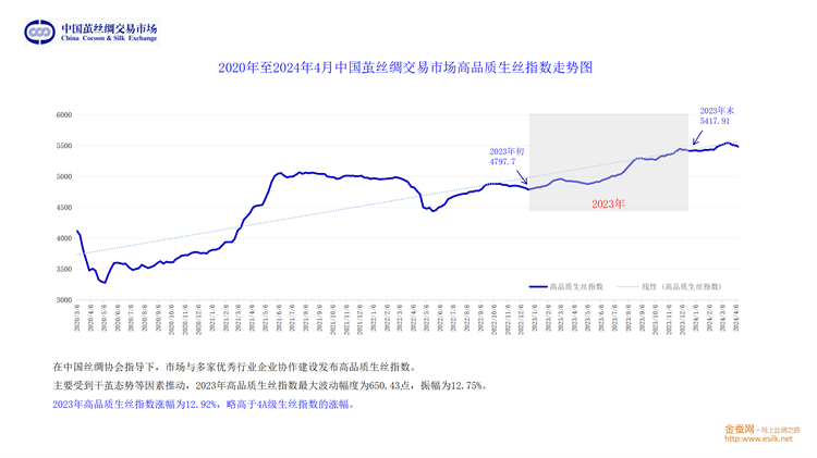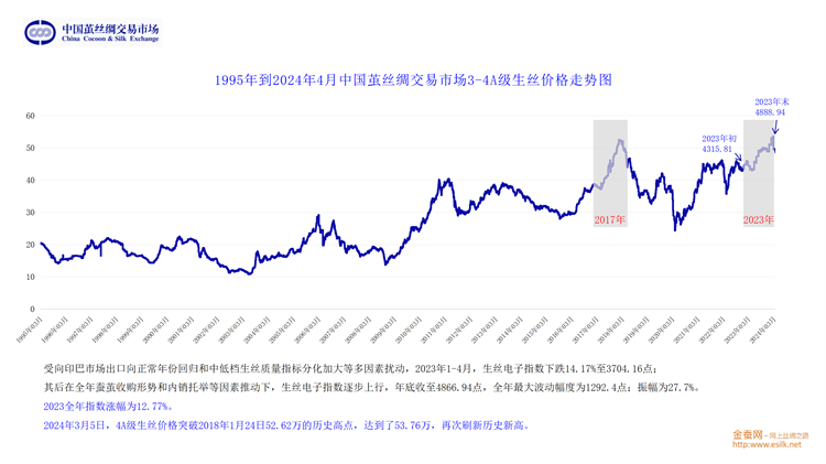 最后,從貨幣政策及物價水平、新中式國潮流行趨勢的發(fā)展、種桑養(yǎng)蠶人口老齡化趨勢和行業(yè)自身運行的規(guī)律等多方面綜合,劉董認為,以4A級生絲為基準,2024年大概率圍繞50萬上下,進行震蕩運行。他期待行業(yè)企業(yè)不斷地深耕細作,積極挖掘絲綢元素,持續(xù)順勢而為地推陳出新,牢牢抓住由5000年絲綢文化支撐帶起的新國潮風(fēng)口,推動行業(yè)持續(xù)、健康、高質(zhì)的發(fā)展。