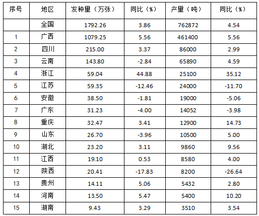 表 1 2023 年全國桑蠶繭生產(chǎn)情況