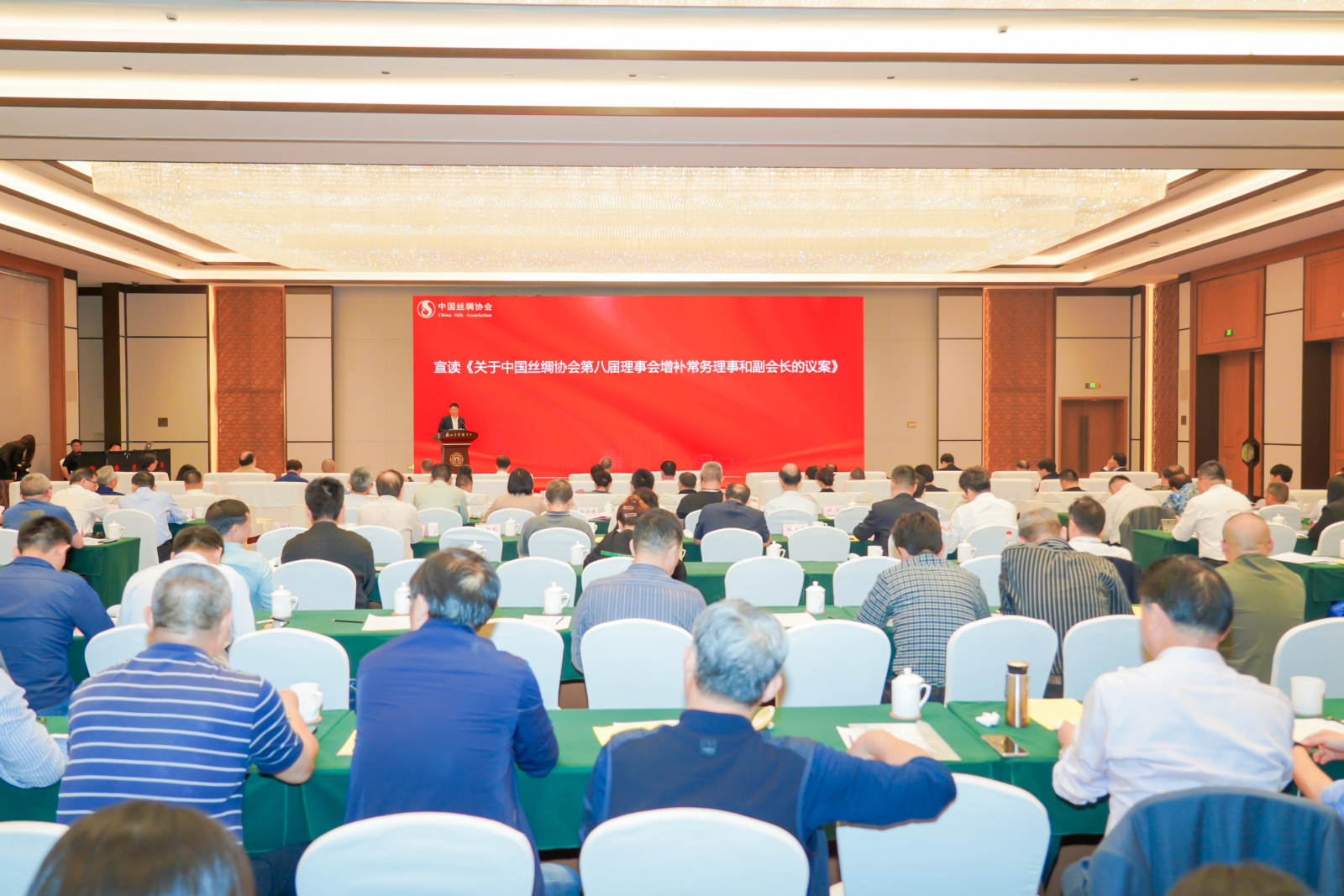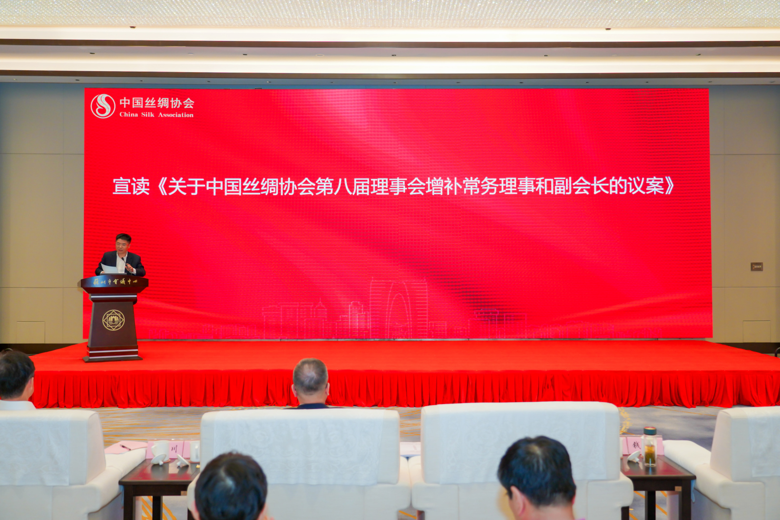中國絲綢協(xié)會黨支部書記、監(jiān)事長錢有清宣讀《關(guān)于中國絲綢協(xié)會第八屆理事會增補常務(wù)理事和副會長的議案》。