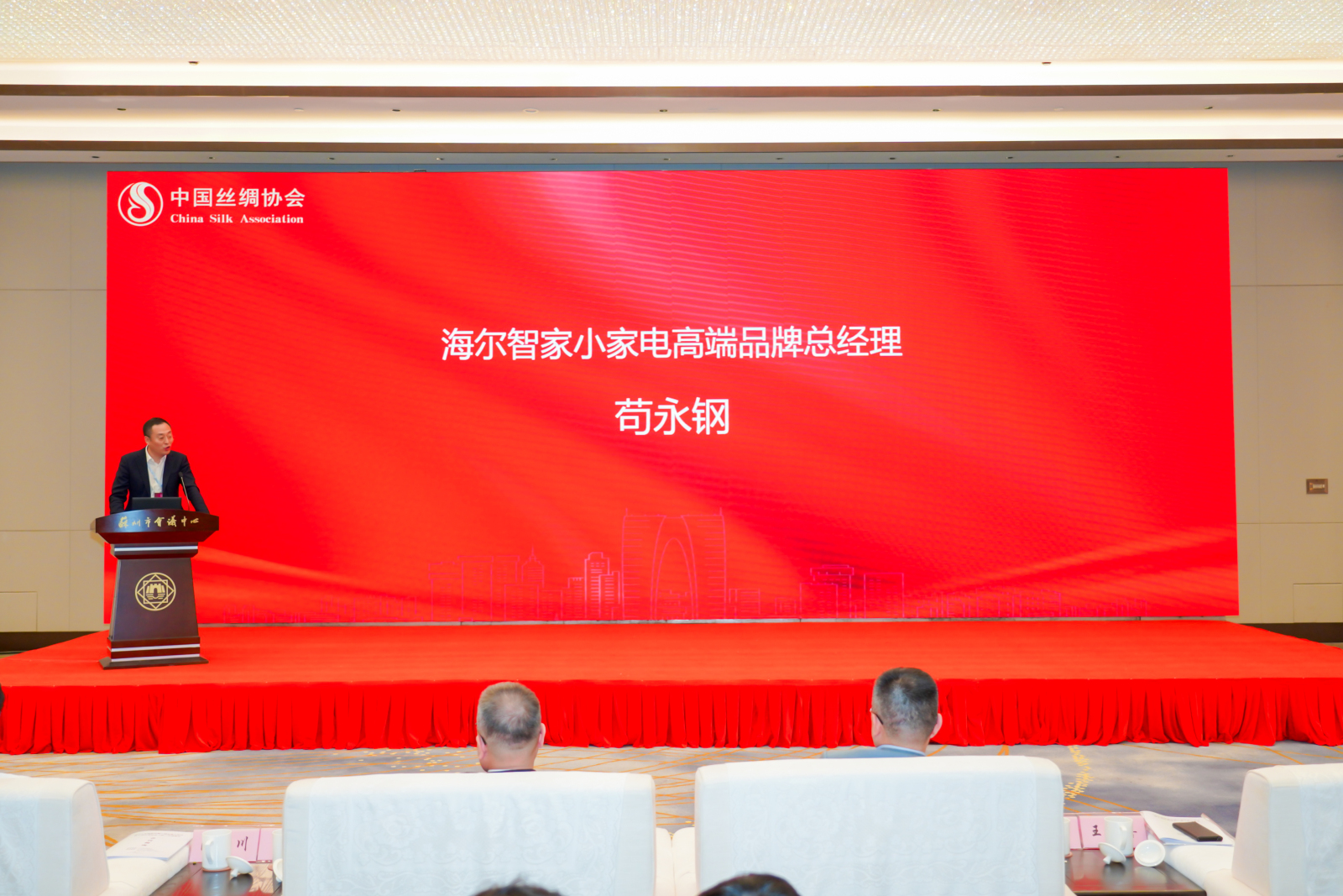 海爾智家小家電高端品牌總經(jīng)理茍永鋼介紹絲綢專業(yè)護(hù)理新產(chǎn)品上市情況