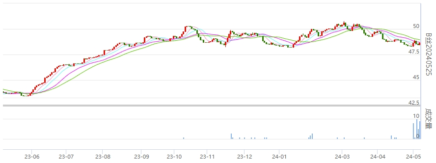 今日(2024年05月09日,周四)中國(guó)繭絲綢交易市場(chǎng)生絲指數(shù)上漲0.35%報(bào)于4909.70點(diǎn)。B絲(商檢4A級(jí)生絲):240525合約上漲0.21萬元報(bào)收于48.66萬元;240925合約上漲0.21萬元報(bào)收于49.20萬元;250325合約上漲0.30萬元報(bào)收于49.47萬元。