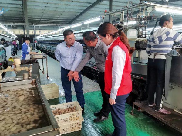 宜州農(nóng)合行董事長朱洲深入廣西嘉鳳絲綢有限公司進(jìn)行繭絲產(chǎn)業(yè)全流程調(diào)研
