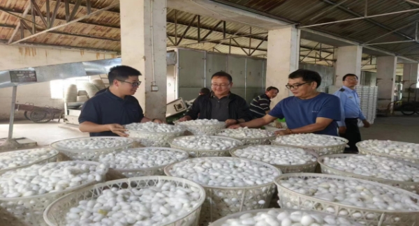 5月9日,云南省大姚縣蠶桑產(chǎn)業(yè)發(fā)展專班組深入石羊鎮(zhèn)土擺窩、土枧槽、瓦房繭站,實(shí)地查看春繭收購情況,詳細(xì)了解蠶繭定級(jí)標(biāo)準(zhǔn)和價(jià)格,聽取蠶農(nóng)意見建議。