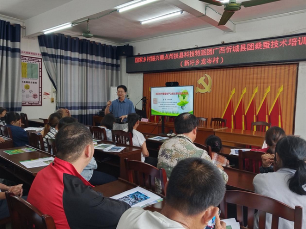 忻城縣是全國桑蠶第二大縣,現(xiàn)有桑園25.3萬畝,全縣有27萬余人種桑養(yǎng)蠶。受去年秋季繭價較高的激勵,農(nóng)戶養(yǎng)蠶積極性高漲。為了促進蠶農(nóng)增收,今年開春以來,忻城縣發(fā)揮國家鄉(xiāng)村振興重點幫扶縣科技特派團忻城團的作用,統(tǒng)籌協(xié)調(diào)省內(nèi)外的蠶桑專家和本縣鄉(xiāng)村蠶桑產(chǎn)業(yè)科技特派員,深入全縣各蠶桑種養(yǎng)大鎮(zhèn)、養(yǎng)蠶示范基地、田間地頭等,開展技術(shù)培訓(xùn)、現(xiàn)場指導(dǎo)示范,圍繞桑樹主要病蟲害發(fā)生情況及如何保桑促進產(chǎn)業(yè)高質(zhì)量發(fā)展等方面開展調(diào)研,同時積極開展蠶桑資源綜合利用、省力養(yǎng)蠶設(shè)備、桑園病蟲害綠色防控、低產(chǎn)桑園改良等技術(shù)攻關(guān)。截至2024年5月9日止,忻城縣開展蠶桑技術(shù)指導(dǎo)278人次,開展集中科技服務(wù)活動6場,參與群眾250多名,舉辦蠶桑技術(shù)培訓(xùn)班15期,培訓(xùn)人員705人次,傳幫帶本土人才6人次,進行產(chǎn)業(yè)專項調(diào)研3次,引進示范蠶桑新品種7個(對)、新技術(shù)3項、新設(shè)備(產(chǎn)品)3個,開展技術(shù)攻關(guān)2項,技術(shù)指導(dǎo)新型經(jīng)營主體6家,開展基地建設(shè)2個,累計服務(wù)覆蓋10個鄉(xiāng)(鎮(zhèn))、18個行政村(社區(qū))。