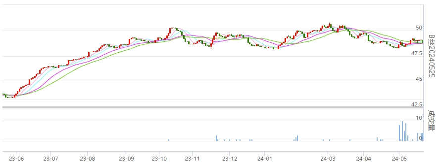 今日(2024年05月22日,周三)中國繭絲綢交易市場生絲指數(shù)下跌0.23%報于4939.59點。B絲(商檢4A級生絲):240525合約下跌0.09萬元報收于48.99萬元;240925合約下跌0.24萬元報收于49.29萬元;250325合約下跌0.21萬元報收于49.83萬元。
