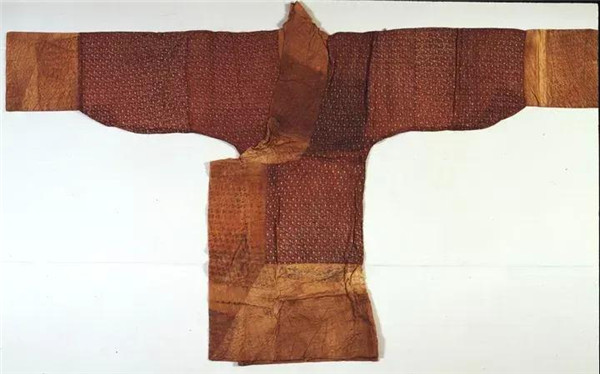 印花敷彩紗直裾絲綿袍出土于馬王堆一號(hào)漢墓,是辛追夫人生前最喜愛的服飾之一。其面料為印花敷彩紗,里、袖、領(lǐng)、緣為絹,內(nèi)絮絲綿,是目前世界上發(fā)現(xiàn)最早的印花與彩繪相結(jié)合的絲織品。一號(hào)墓竹笥共出土3件印花敷彩紗絲綿袍,其款式基本相同。