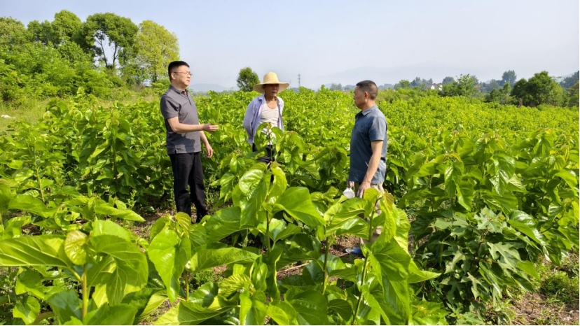 當(dāng)下正是養(yǎng)蠶季。一大早,勉縣農(nóng)培中心蠶桑專業(yè)技術(shù)人員,來到鎮(zhèn)川鎮(zhèn)安咀村漢中市錦繡蠶業(yè)科技生態(tài)有限公司近千畝桑園地,沿著田間道路仔細(xì)查看每一行桑樹生長情況?!斑@一片桑樹沒有剛才看到的那一片桑樹長勢好,主要表現(xiàn)在桑樹枝條短細(xì)、葉片瘦小偏黃,主要原因是土地板結(jié)、缺肥缺水,要想養(yǎng)好蠶,必須先管好桑,管好桑是蠶桑產(chǎn)業(yè)高質(zhì)量發(fā)展的基礎(chǔ)”,技術(shù)人員對公司的管理人員說。
