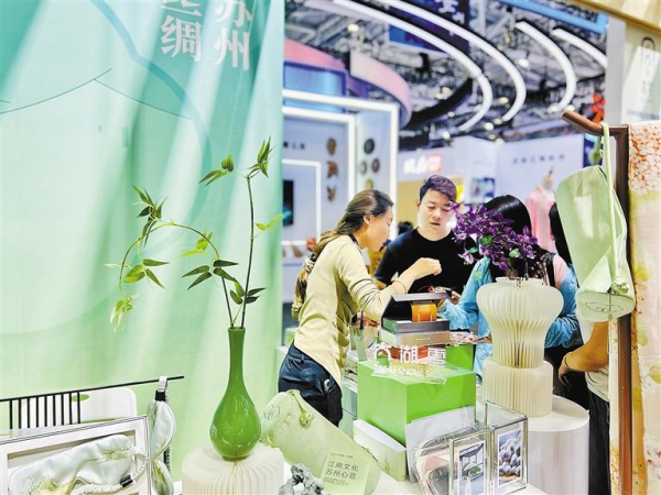 “我們就帶了8套蠶絲便攜毯過來,半天就賣光了,還有商家找我們預(yù)定500套,我們都不夠貨賣了!”5月25日,位于11號展館江蘇展區(qū)的蘇州太湖雪絲綢股份有限公司藝術(shù)設(shè)計經(jīng)理趙梓君告訴記者。