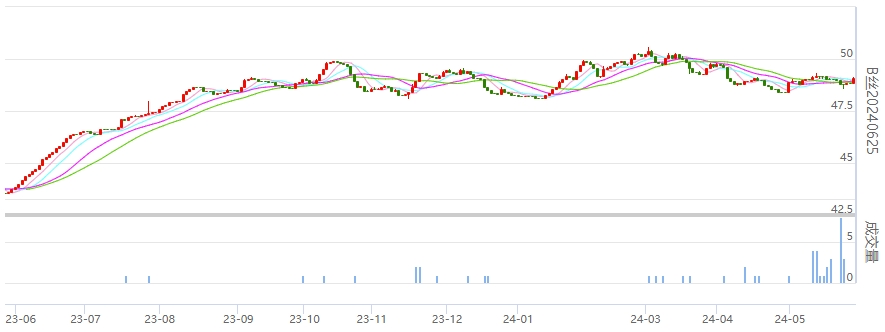 今日(周三)生絲盤面各遠(yuǎn)近合約均不同程度收紅,成交較昨日放大些,活躍合約的持倉量也在繼續(xù)增加。生絲指數(shù)和240925合約的KDJ三線今日交叉向上運行。