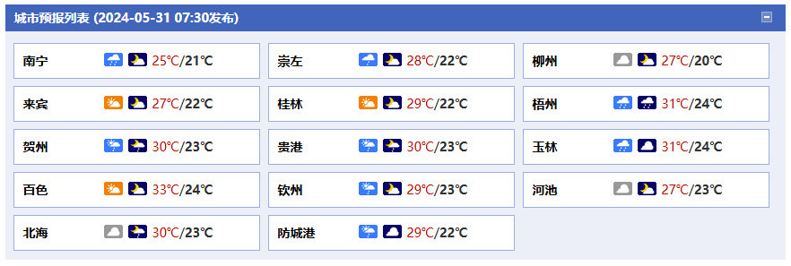 廣西氣象臺(tái)31日05時(shí)發(fā)布預(yù)報(bào):