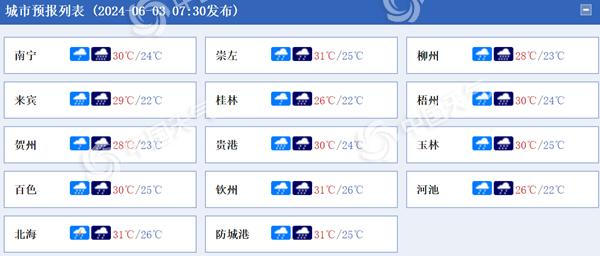 廣西各城市預(yù)報。(來源:中國天氣網(wǎng))