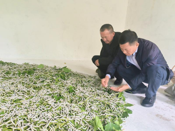 5月30日,家蠶種質(zhì)資源庫建設(shè)與創(chuàng)新團隊黃德輝研究員及石涼副研究員,應邀前往安徽省岳西縣開展蠶期科技服務。在岳西縣特色農(nóng)業(yè)服務中心劉軍主任的陪同下,與毛尖山鄉(xiāng)林河村負責人、蠶桑技術(shù)人員及蠶業(yè)合作社負責人就近期蠶區(qū)農(nóng)藥中毒和蠶病發(fā)生等情況進行座談交流。今年春蠶期毛尖山鄉(xiāng)林河村和合林村兩個村的春蠶因林業(yè)無人機治蟲農(nóng)藥污染桑葉致近200余張蠶發(fā)生不同程度的急、慢性中毒,蠶兒發(fā)育不齊或大量死亡的情況,蠶農(nóng)損失嚴重。村民吳慶旺將桑葉樣本送至專業(yè)機構(gòu)進行檢測結(jié)果顯示,新鮮桑葉中氯氟氰菊酯和高效氯氟氰菊酯的含量達0.015mg/kg。