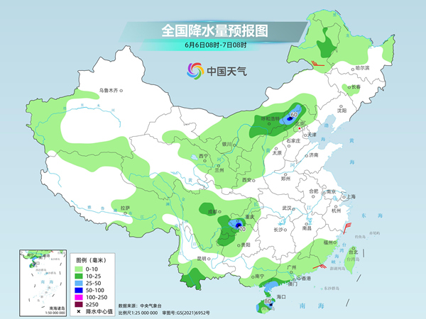 明天,內(nèi)蒙古中西部和東北部、河北北部、四川東南部、重慶西南部、貴州西北部、云南南部、廣西東南部、廣東西南部和海南島等地部分地區(qū)有中到大雨,其中,河北北部、重慶西南部、海南島東北部等地局地有暴雨(50~80毫米)。